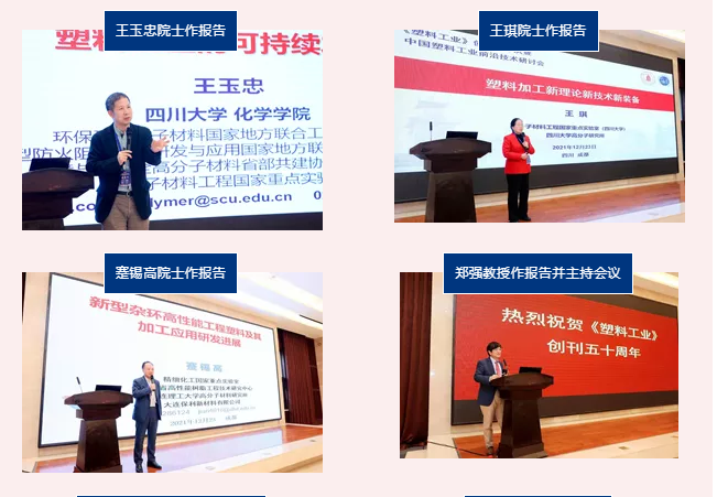 12月22日《塑料工業》創刊50周年慶暨中國塑料工業前沿技術研討會在四川成都盛大開幕。王玉忠院士、王琪院士、蹇錫高院士、鄭強、傅強、劉春太、何慧等著名教授,中國合成樹脂協會鄭塏理事長、四川大學黃銳老先生、《塑料工業》首任主編邱有德老先生、《塑料工業》編委、以及全國各地專家學者、企業人員、媒體同行二百余人受邀并出席此次盛會。